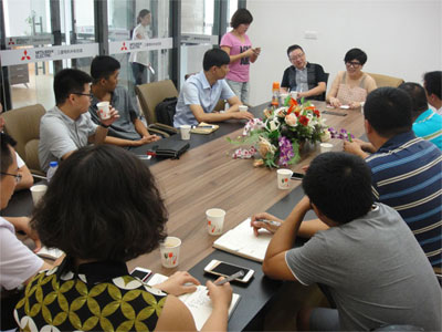 来源: wxsldj 点击次数: 发布日期:2015-07-302015年7月30日上午,由三菱电机组织的重庆三菱电机经销商组团来我司交流学习,交流团一行十来人由我司相关负责人亲自接见招待,随团人员近距离参观了我司一楼展厅布置,设备陈列、装修风格及三楼办公区域。考察团一行对我司的基础设施建设及工作环境给予高度评价。